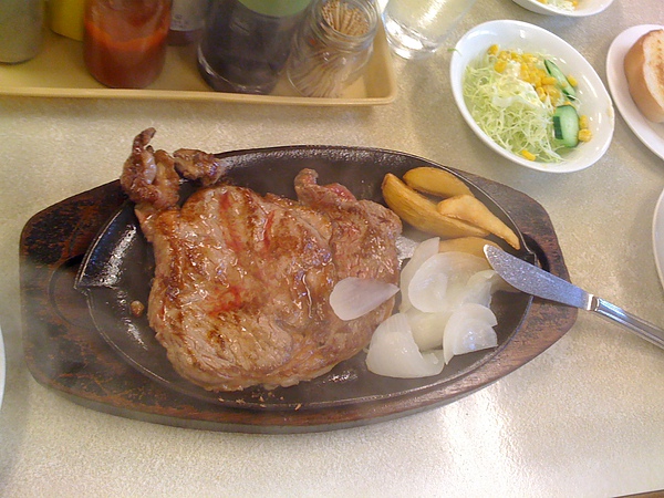 日本人吃牛排都配白飯吃…所以我們也點了一碗白飯…因為牛排味道夠…配白飯真的很好吃…